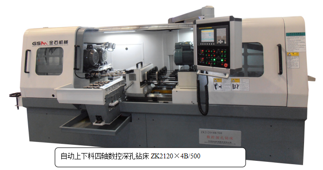 應(yīng)廣大用戶的要求,金石機(jī)械在之前制造四軸槍鉆機(jī)床的基礎(chǔ)上,針對工件裝卸的不便及費(fèi)時(shí)的缺點(diǎn),研發(fā)了如下自動(dòng)上下料的四軸深孔鉆床。大大提高了槍鉆機(jī)床的利用率,并降低了操作工人的勞動(dòng)強(qiáng)度。很快得到廣泛應(yīng)用。