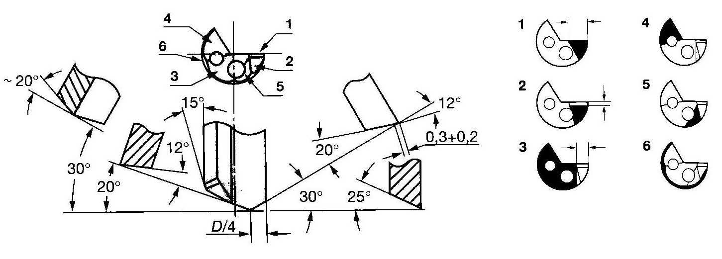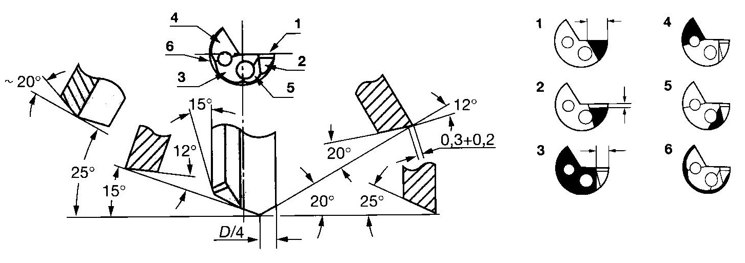 二:φ5mm<直徑≤φ20mm槍鉆的刃磨角度